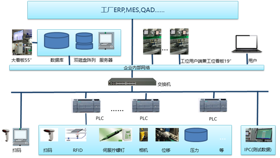 通过PLC即时收集各工序上的零部件位移速、压力参数、批次等信息,将数据传至工控机内,再统一上传至数据库服务器保存。